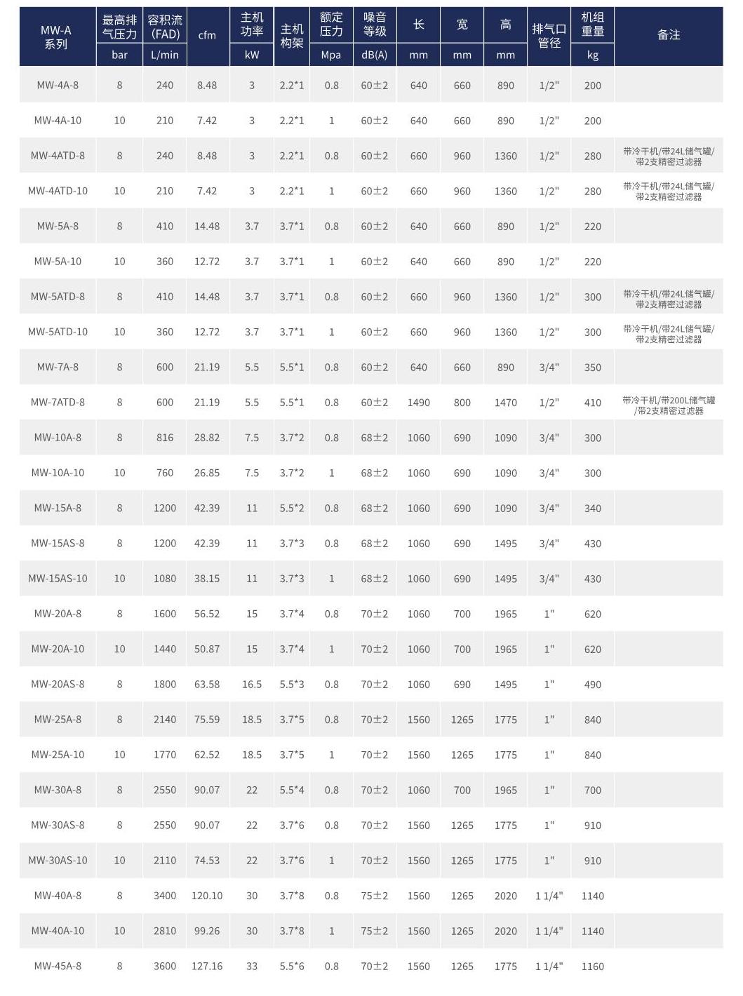 MW-A系列 无油涡旋式压缩机(功率:3~33kW)