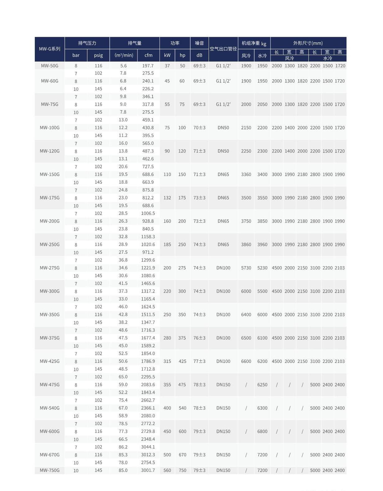 MW-G系列 干式无油工频螺杆压缩机(功率:37~560kW)