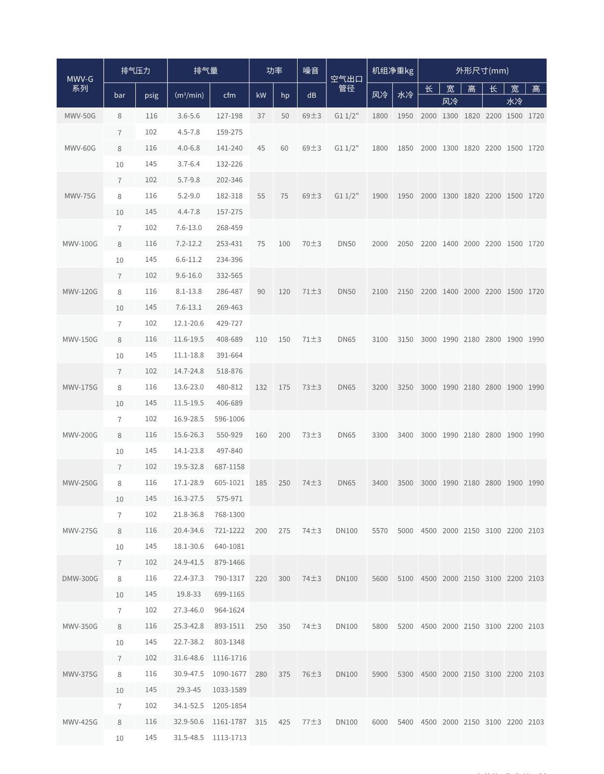 MWV-G系列 干式无油永磁变频螺杆式压缩机(功率:37~315kW)